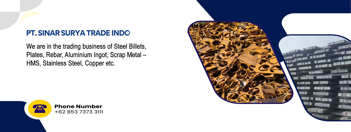 We are in the trading business of Steel Billets, Steel Plates (Slab), Rebar, Aluminium Ingot, Scrap Metal – HMS, Stainless Steel, Copper wire, Aluminium etc. We can also cater the requirements of all steel products like rebar, HRC, CRC, angles etc. We can speak English and Indonesian language so you can communicate with us without any barriers. Our motto is to provide the quality goods as per schedule will full satisfaction to our customers.